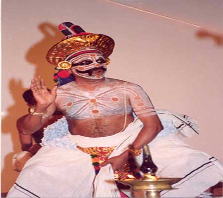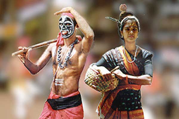 | Kakkarissi Natakom is a satirical dance-drama based on the puranic legends of Lord Siva and his consort Parvati when they assumed human forms as Kakkalan and Kakkathi - a nomadic tribe of fortune tellers. This is the only portion which is borrowed from Hindumythological legends and the rest of the story revolves around contemporary issues.The Kakkarissi Natakom Dance is therefore equally appreciated in the 21st century because of its ability to blend with the contemporary society.Kakkarissi Natakom Dance is one of the traditional dance forms of Kerala which blends the modern society and its issues with the Hindu Puranas at its background which surely makes it a class apart. The chief characters are Kakkalan, Kakkathi, Vetan, Velichappadu, Thampuraan and the ubiquitous Jester. The Dholak, Ganchira,Chenda and the Harmoniumprovide the background score. |