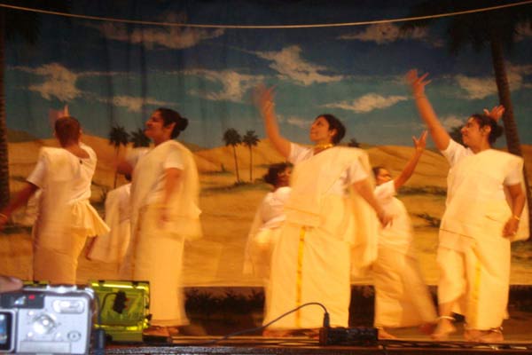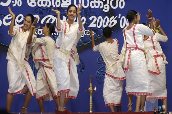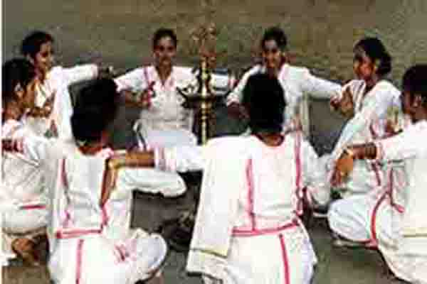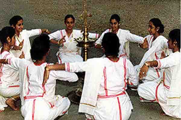 Margomkali Dance performed in Kerala is a ritual folk art of the Syrian Christians of Kottayam and Thrissur region in Kerala. In the Margomkali Dance there are about a dozen dancers who dance around the Nilavilakku which is lighted wick lamp which is a traditional symbol of Kerala.Adorned in their pristine white dhotis and a peacock feather on their turbans the Margomkali Dance is all about worshipping the Christ.The word `Margam` means path or way, religion or creed. The real source of inspiration for the performance of Margam Kali was Kalaripayattu, which was very popular when the Christian community had developed the form. This dance consists of several other group dances and martial arts like Parichamuttu Kali.They perform the dance wearing the traditional white dhoti and a peacock feather on the turban. Though performed by men in olden days, now a days it is performed by female dancers in a simple white dhoti, chatta (a white blouse with long sleeves) and neryathu - the three piece traditional Syrian Christian attire.It is believed the Nilavilakku or the lamp is Christ and the dancers which surround it are his disciples. They worship Jesus Christ in this way. The dance form shows a beautiful blend of Christianity with traditional art forms of Kerala.The origin of the dance form can be traced to the time of Portuguese invasion and much before that. Margomkali Dance also depicts the life and works of St. Thomas who arrived during 52 A.D. it was during this time that many of the Keralites took up Christianity and it blended with the local culture and rituals.
