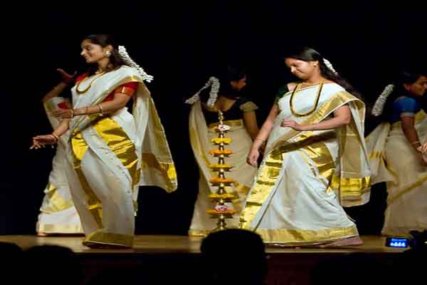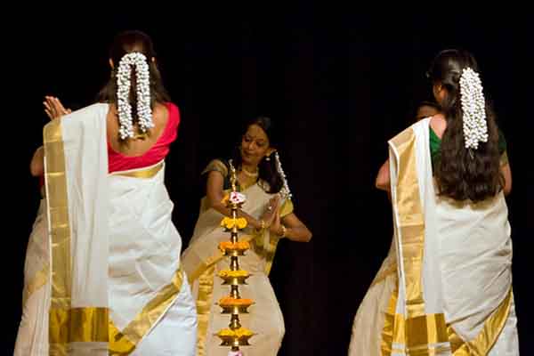 In Kerala, Thiruvathira is a festival primarily for women (although there are other festivals primarily for women, this is the main one). It is celebrated in the Malayalam month of Dhanu (December-January).This Thiruvathirakali is is a very popular dance form of Kerala, It is usually performed in connection with the Kerala festival called Onam and Thiruvathira.Thiruvathirakali is also called as "Kaikottikali". On this day, married and unmarried women perform the dance yearning for the well-being of their husband and for acquiring a good husband respectively. It is a kind of ritual performed to ensure happy and harmonious marital life.women take an early bath and get dressed in traditional attire (Mundu and Veshti). They take noyambu (fast) on that day and have only non-rice food. In the evening, they perform the dance and decorate their hair with Pathirapoovu (a kind of flower). This is a group dance and steps in this dance are very simple but elegant. 5 to 7girls will stand in a circle around a lighted brass lamp, and dance each step to the rhythm of the songs they sing, clapping their hands. These special songs for thiruvathira is called Thiruvaathirappattu.The graceful dance takes place around a Nilavilakku or a lamp and the dance is a symbol of female energy.The sinuous movements executed by a group of dancers around a nilavilakku, embody 'lasya' or the amorous charm and grace of the feminine.