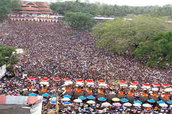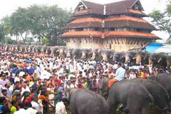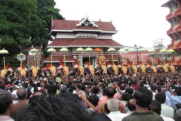 The city holds annual eight day festival called Thrissur Pooram during which brilliantly caparisoned elephants lead processions. Followers representing the Thiruvambadi temple on one hand and the Paramekkavu temple on the other hand celebrate the Pooram. Elaborate processions from both these temples start off amidst much fanfare through the streets of Thrissur.The elephants belonging to these temples lead the processions. Each elephant participating in this festival is richly caparisoned, adorned with ornaments and topped with an equally well-decorated parasol. There are 15 elephants from each group. Each side tries to outdo the other in the decoration of elephants, as the side putting up a better display than its rival is adjudged as the winner for that particular year.
