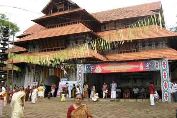 Vadakkumnathan Temple This temple is a classic example of the Kerala style of architectrue. The temple contains the sacred shrines of Paramashiva, Parvathy, Sankaranarayana, Ganapathy, Sri Rama and Sri Krishna. The central shrines and Koothambalam exhibit exquisite vignettes carved in wood. Legend goes that this temple was founded by Parasurama. ' Thrissur Pooram ' the grandest temple pageantry in Kerala, is celebrated here in April -May every year.