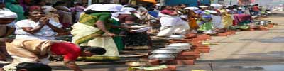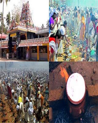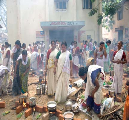 Attukal Bhagavathy Temple is situated in Attukal 2km away from Trivandrum city, Trivandrum District kerala.The Pongala Mahotsavam is the most important festival of Attukal Bhagavathy Temple. The offering of Pongala is a special temple practice prevalent in the southern part of Kerala and some parts of Tamilnadu. It is a ten-day programme commencing on the Karthika star of the Malayalam month of Makaram-Kumbham (February-March) and closing with the sacrificial offering known as Kuruthitharpanam at night.It is a ten-day-long event which commences from the Bharani day (Karthika star) of the Malayalam month of Makaram-Kumbham (February-March) and comes to an end with the sacrificial offering known as Kuruthitharpanam at night. Ninth day is the biggest day of the festival when the famous Attukal Pongala Mahotsavam takes place. Lakhs of women from Kerala and other parts of the country participate in this festival. The spirit of unity is an important feature of this festival. Though it is held in the temple premises, it extends to about 5 kms radius, to accommodate the large number of women devotees who come here to prepare and offer pongal to the goddess. The women do this for the well being of their husband and children.Only women are allowed to participate in this ritual. Right from the previous night, thousands of women, regardless of caste, creed and colour assemble at the temple premises and on either side of the roads leading to the shrine to make the Pongala offering. Devotees from across the country and even from abroad participate in the ritual.The ceremony is exclusively confined to women folk and the enormous crowd, which gathers in Thiruvananthapuram on this auspicious day is reminiscent of the Kumbhamela Festival of North India.