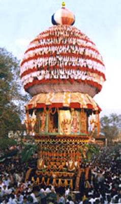 taken around the temple in beautifully decorated chariots.