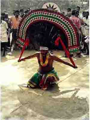 the glow of the traditional temple torches called Theevatti , which